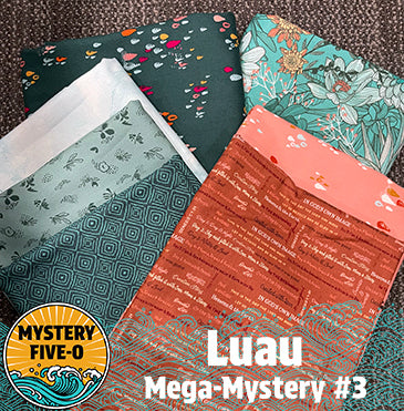 We hope you'll join us for the M50 Mystery #3, Luau. This mystery is a virtual event happening in our Mystery Five-0 Facebook Group in February and March, with the reveal in April. A mystery clue will be emailed to registered quilters each week in March. The reveal patterns (yes, there are two choices for setting your blocks) will be emailed in April. Instructional videos for each clue and the reveal patterns will be posted in our Facebook group. Join our group check reguarly for details.